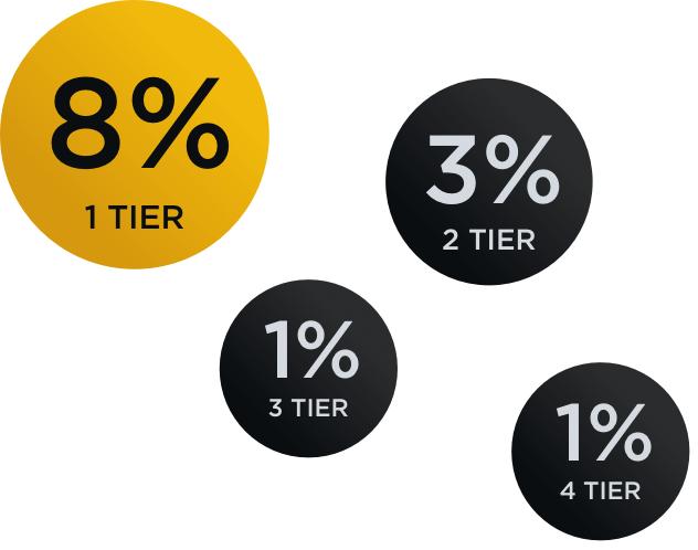 You will get 8% of each deposit a tier 1 referral makes, 3% of the deposit a tier 2 referral makes, 1% of the deposit from a tier 3 referral and 1% of the deposit from a tier 4 referral.